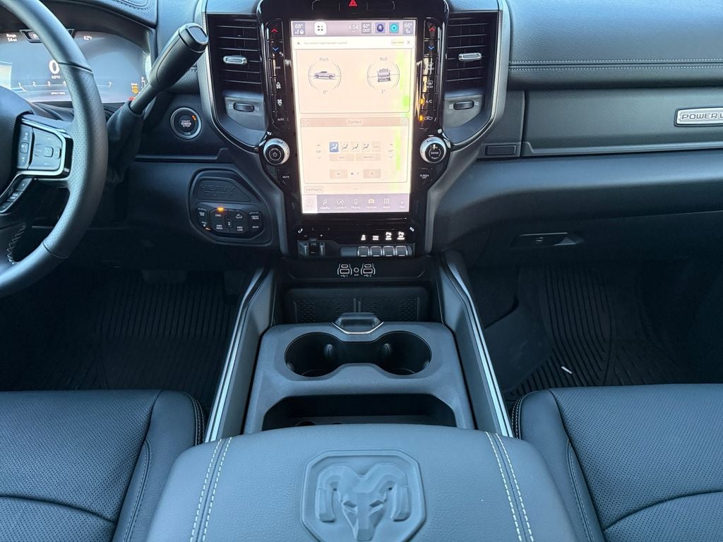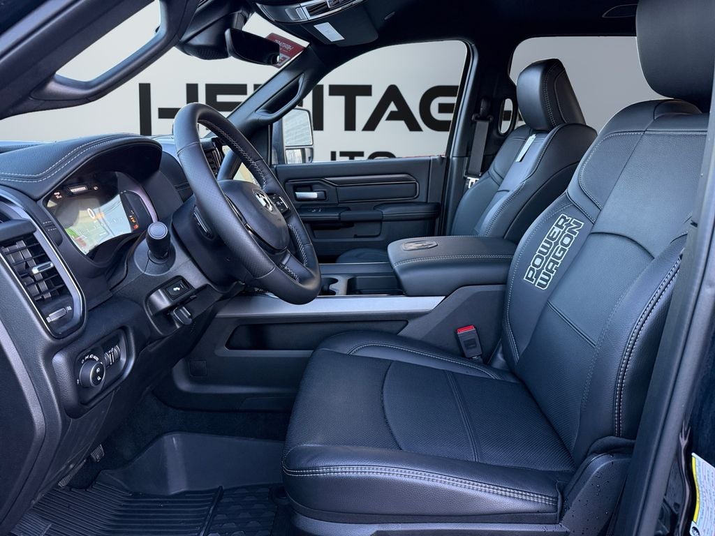 Bed Utility Group: MOPAR Spray in Bedliner; MOPAR Deployable Bed Step; LED Bed Lighting. Quick Order Package 2UP Power Wagon: Power Wagon Instrument Panel Spec Plate; RAM Articulink Suspension; 17" X 8.0" Black Painted Aluminum Wheels; 17" Steel Spare Wheel; Front Disconnecting Stabilizer Bar; Instrument Cluster Theme 5 - Power Wagon; Tru-Lok Front and Rear Axles; Goodyear Brand Tires; 4.10 Axle Ratio; Black Wheel Center Hub; Raised Ride Height; LT285/70R17D OWL AT Tires. Power Wagon Level 1 Equipment Group: Rain Sensitive Windshield Wipers; Power Adjustable Pedals with Memory; Body Color Door Handles; Auto Power-Folding Mirrors; Overhead LED Lamps; Exterior Mirrors with Heating Element; Auto Dim Exterior Mirror; MOPAR Rock Rails with Step Pad; Mirror Running Lights; Black Exterior Mirrors; Power-Adjustable Convex Aux Mirrors; Premium Overhead Console; Forward and Reverse Utility Lights; 9 Alpine Speakers with Subwoofer; Power Heated Fold Telescopic Mirrors with Memory; Exterior Mirrors with Supplemental Signals; Front Electric Winch; Sport Performance Hood; Exterior Mirrors Courtesy Lamps; Leather Trimmed Bucket Seats; Front Door Locks 2-Door Passive Entry; LED Interior Lighting; Auto High Beam Headlamp Control; LED Dome Lamp with On/off Switch; Universal Garage Door Opener; Exterior Mirrors with Memory; Power Adjust Mirrors; Power Telescoping Mirrors; MOPAR Front and Rear Rubber Floor Mats; Auto Dim Exterior Passenger Mirror; Sun Visors with Illuminated Vanity Mirrors; Auto Adjust in Reverse Exterior Mirrors. Front Electric Winch. MOPAR Rock Rails with Step Pad. Sport Performance Hood. Center Stop Lamp with Cargo View Camera. Diamond Black Crystal PC. MOPAR Front and Rear Rubber Floor Mats. **Equipment listed is based on original vehicle build and subject to change. Please confirm the accuracy of the included equipment by calling the dealer prior to purchase.**