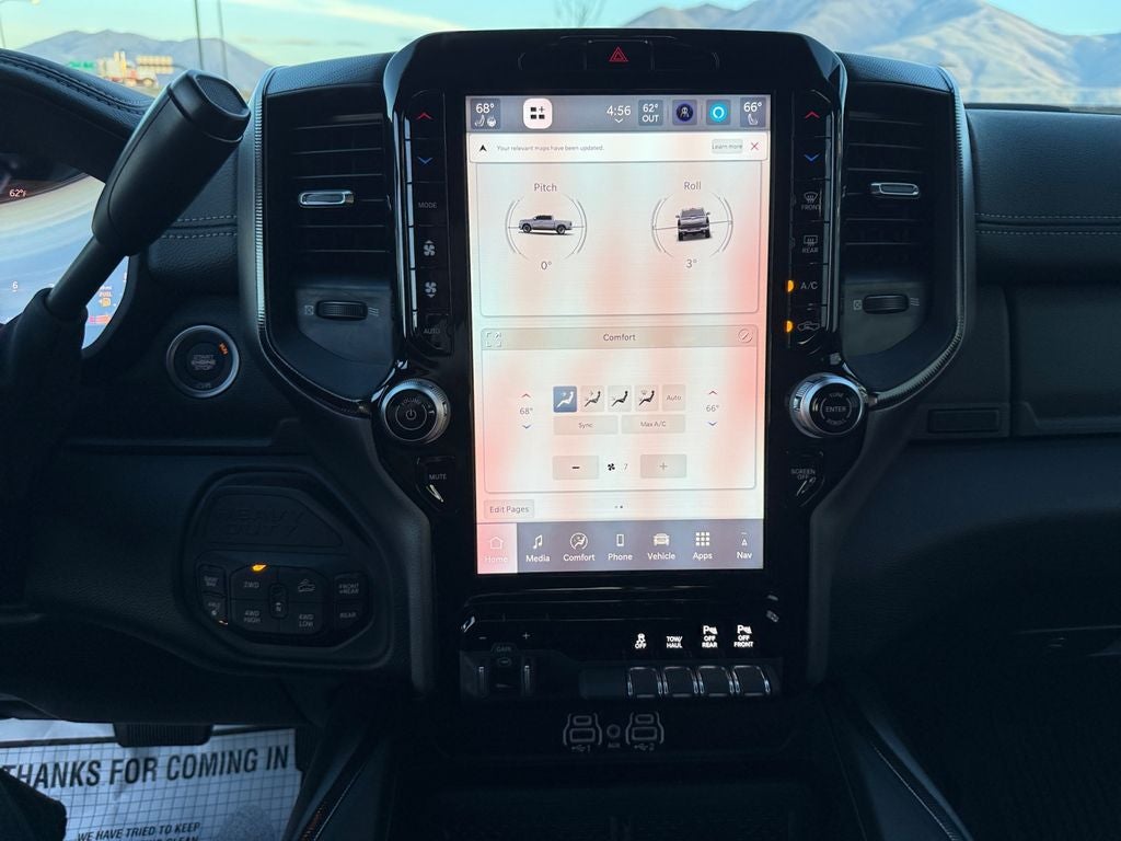 Apple CarPlay: Seamless smartphone integration for the vehicle - stay connected and entertained on the go! The leather seats in this Ram 2500 are a must for buyers looking for comfort, durability, and style. This unit's Forward Collision Warning feature alerts drivers to potential front-end collisions. Keep your hands warm all winter with a heated steering wheel in this unit . This Ram 2500 comes equipped with Android Auto for seamless smartphone integration on the road. This unit features a hands-free Bluetooth® phone system. The installed navigation system will keep you on the right path. See what's behind you with the back up camera on the vehicle. This vehicle has auto-adjust speed for safe following. Greater towing safety becomes standard with the installed trailer brake. Maintaining a stable interior temperature in this model is easy with the climate control system. When you encounter slick or muddy roads, you can engage the four wheel drive on it and drive with confidence.