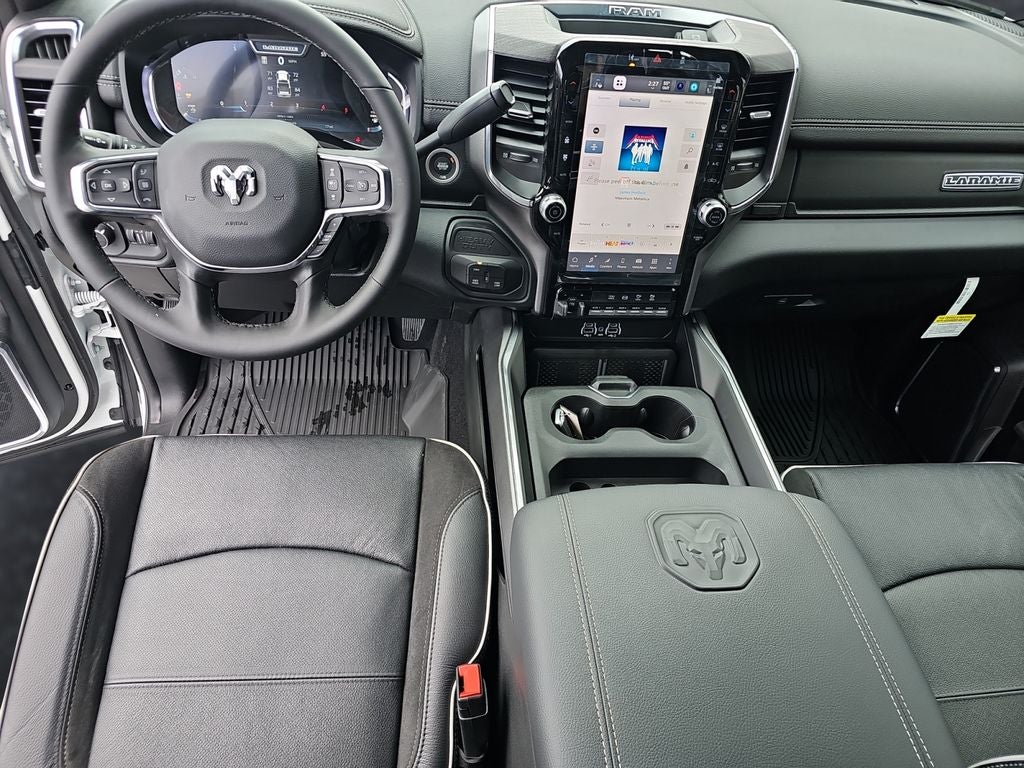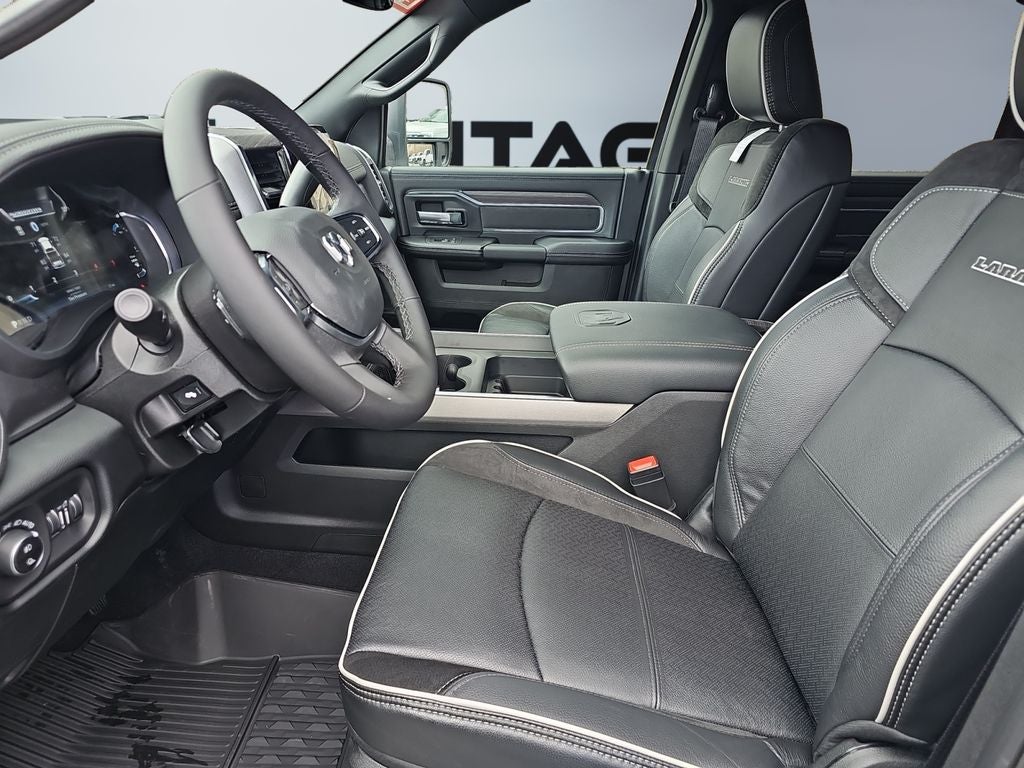 Quick Order Package 24H Laramie. Night Edition: Firestone Brand Tires; Black Exterior Truck Badging; 17" X 6.0" Black Machined Aluminum DRW Wheels; Gloss Black Grille Billets/accents; Body Color Grille Surround; Sport Performance Hood; Black Exterior Mirrors; Black Wheel Center Hub; Firestone Brand Tires; LT285/60R20E OWL On/off Road Tires; Black Exterior Truck Badging; 20" X 8.0" Black Painted Aluminum Wheels; Gloss Black Grille Billets/accents; Body Color Grille Surround; Sport Performance Hood; Black Exterior Mirrors; Black Wheel Center Hub. Laramie Level 1 Plus Equipment Group: Center Stop Lamp with Cargo View Camera; Rain Sensitive Windshield Wipers; Power Adjustable Pedals with Memory; LED Bed Lighting; Traffic Sign Recognition; Auto Power-Folding Mirrors; Adaptive Steering System; Exterior Mirrors with Heating Element; Auto Dimming Exterior Mirrors; Drowsy Driver Detection; Mirror Running Lights; MOPAR Deployable Bed Step; Foam Bottle Insert (door Trim Panel); Power-Adjustable Convex Aux Mirrors; Active Lane Management System; Forward and Reverse Utility Lights; Leather Trimmed Bucket Seats; Power Heat Fold Memory Telescopic Mirrors; Exterior Mirrors with Supplemental Signals; Exterior Mirrors Courtesy Lamps; MOPAR Spray in Bedliner; Remote Tailgate Release; Auto High Beam Headlamp Control; Chrome Exterior Mirrors; Exterior Mirrors with Memory; Power Adjust Mirrors; 2nd Row in Floor Storage Bins; Power Telescoping Mirrors; Auto Dimming Exterior Passenger Mirror; Auto Adjust in Reverse Exterior Mirrors. 5th Wheel/gooseneck Towing Prep Group. Leather Trimmed Bucket Seats. Center Stop Lamp with Cargo View Camera. 50 Gallon Fuel Tank. Instrument Panel Mounted Auxiliary Switches. MOPAR Front and Rear Rubber Floor Mats. Transfer Case Skid Plate Shield. **Equipment listed is based on original vehicle build and subject to change. Please confirm the accuracy of the included equipment by calling the dealer prior to purchase.**