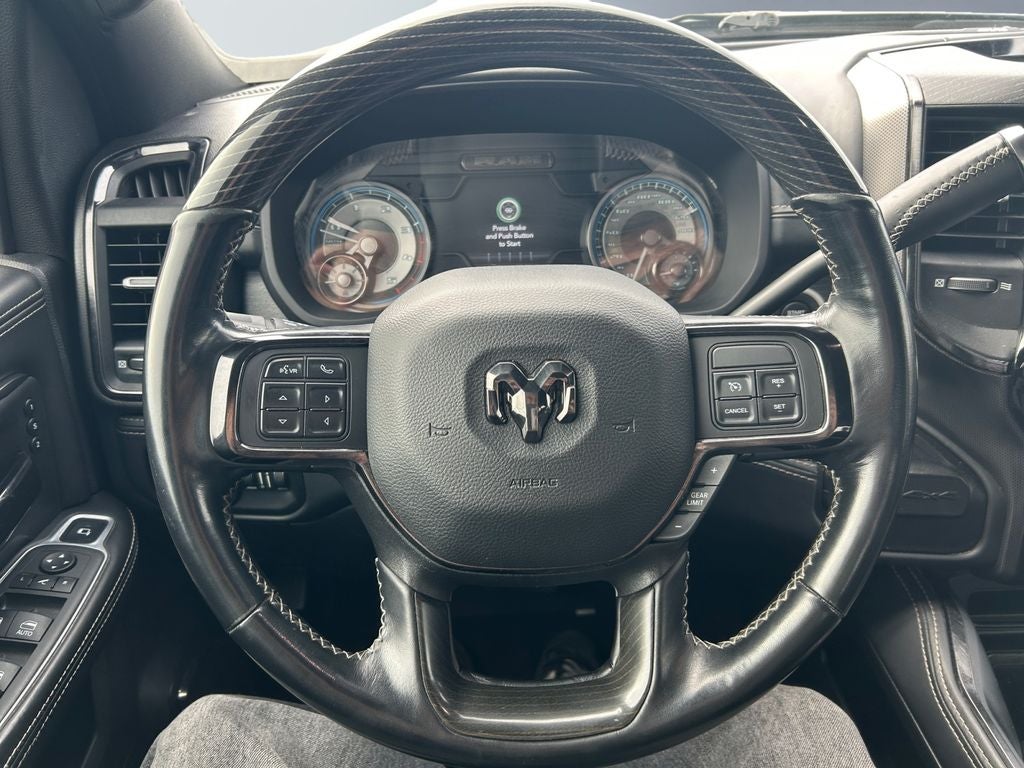 Cold Weather Group: Engine Block Heater; MOPAR Winter Front Grille Cover. Quick Order Package 21M Limited. Night Edition: 17" X 6.0" Black Machined Aluminum Wheels; Mirror-Mounted Aux Reverse Lamps; Black Ram Head Tailgate Badge; Exterior Mirrors with Supplemental Signals; Black Headlamp Bezels; Body Color Door Handles; Exterior Mirrors Courtesy Lamps; Black Wheel Center Hub; Painted Front Bumper; Painted Rear Bumper; Trailer Tow Mirrors; Exterior Mirrors with Heating Element; Black Exterior Truck Badging; Exterior Mirrors with Memory; Tow Hooks; Mirror Running Lights; Body Color Grille Surround; Power-Folding Mirrors; Black Exterior Mirrors; Black Grille Limited; Black Tail Lamp Bezels; Power Black Tow Mirrors with Convex Spotter and Memory; Power Adjustable Convex Aux Mirrors; Mirror-Mounted Aux Reverse Lamps; Black Ram Head Tailgate Badge; Exterior Mirrors with Supplemental Signals; Black Headlamp Bezels; Body Color Door Handles; Exterior Mirrors Courtesy Lamps; Black Wheel Center Hub; Painted Front Bumper; Painted Rear Bumper; Trailer Tow Mirrors; Exterior Mirrors with Heating Element; Black Exterior Truck Badging; Exterior Mirrors with Memory; Tow Hooks; Mirror Running Lights; Body Color Grille Surround; Power-Folding Mirrors; Black Exterior Mirrors; Black Grille Limited; 20" X 8.0" Cast Aluminum Black Wheels; Black Tail Lamp Bezels; Power Black Tow Mirrors with Convex Spotter and Memory; Power Adjustable Convex Aux Mirrors. Auto Level Rear Air Suspension. Center Stop Lamp with Cargo View Camera. 50 Gallon Fuel Tank. Billet Silver Metallic CC. **Equipment listed is based on original vehicle build and subject to change. Please confirm the accuracy of the included equipment by calling the dealer prior to purchase.**